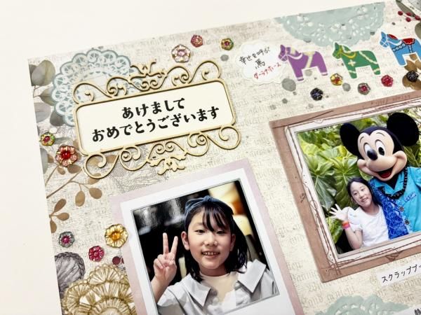 TOP > 2026年用 年賀状講座 > 材料 > 年賀状講座 材料【タイプ03】選べるタイトル!レースとキラキラフラワーのLO